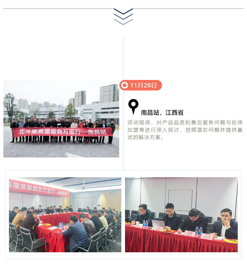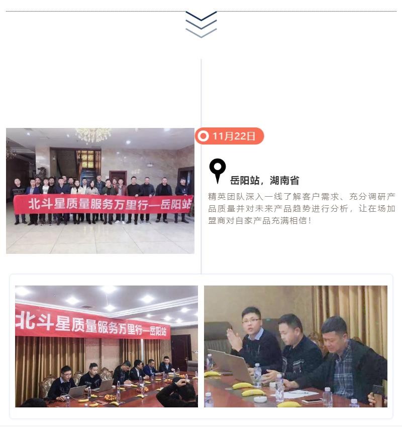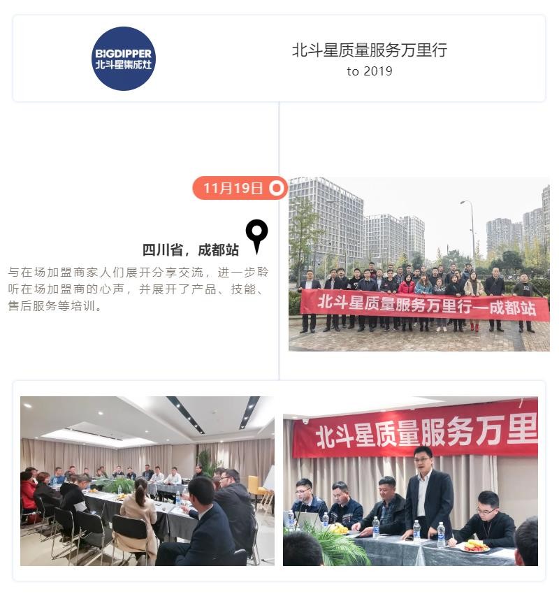 11月19日-12月15日,長達15天的“北斗星質(zhì)量服務萬里行”圓滿結(jié)束,北斗星集成灶制造總監(jiān)沈思恩先生親自帶隊,率領北斗星售后服務、產(chǎn)品研發(fā)、品質(zhì)等部門精英人員一起深入一線,對全國各大銷售戰(zhàn)區(qū)進行回訪。